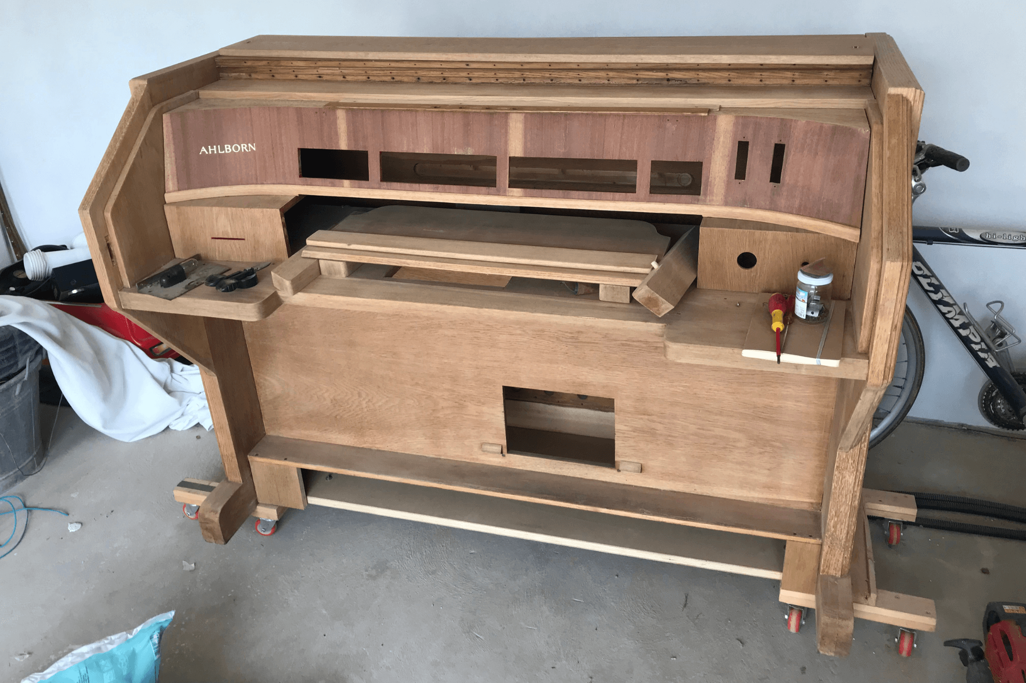 Lo strumento si presentava molto mal ridotto dal punto di vista del mobile e dei meccanismi ma pur sempre completo, così ho deciso di restaurarlo completamente.