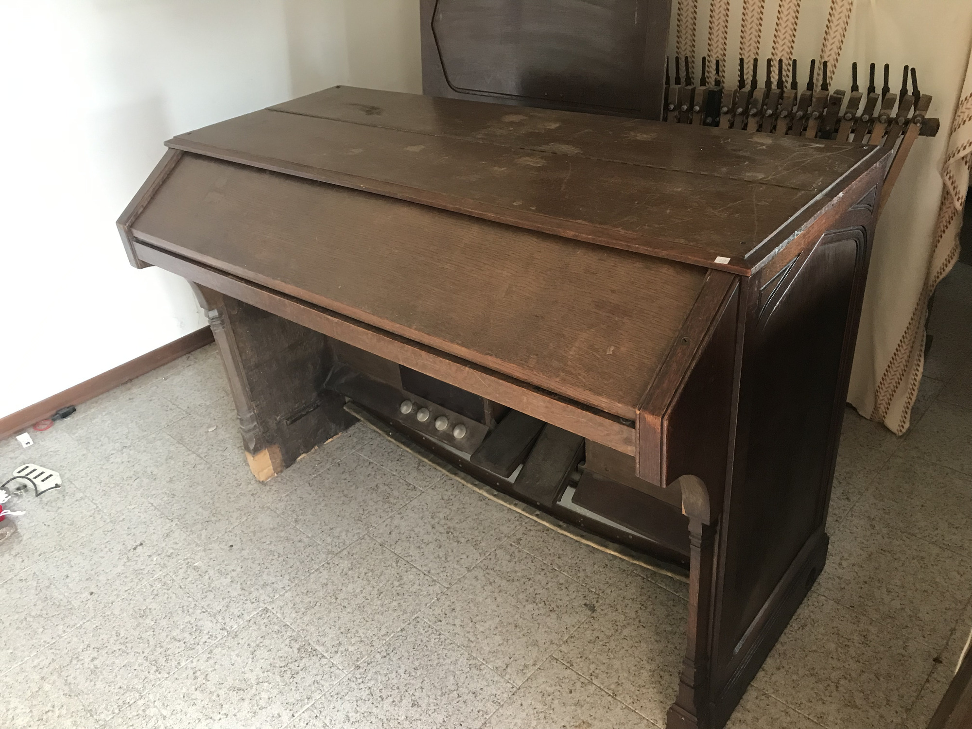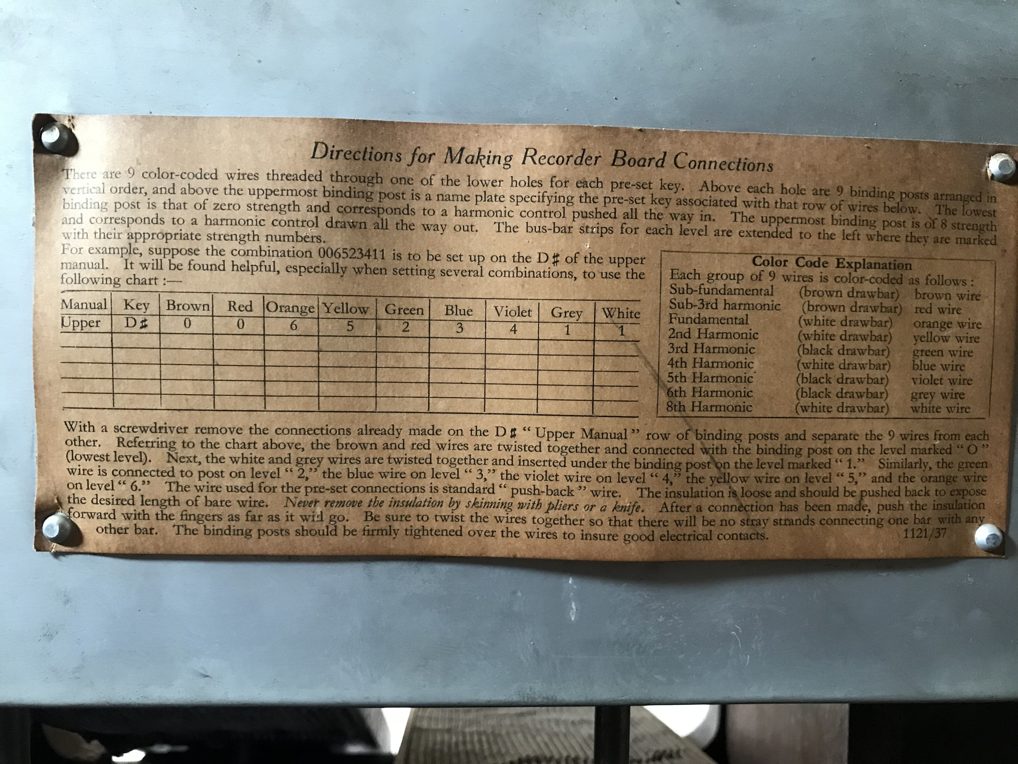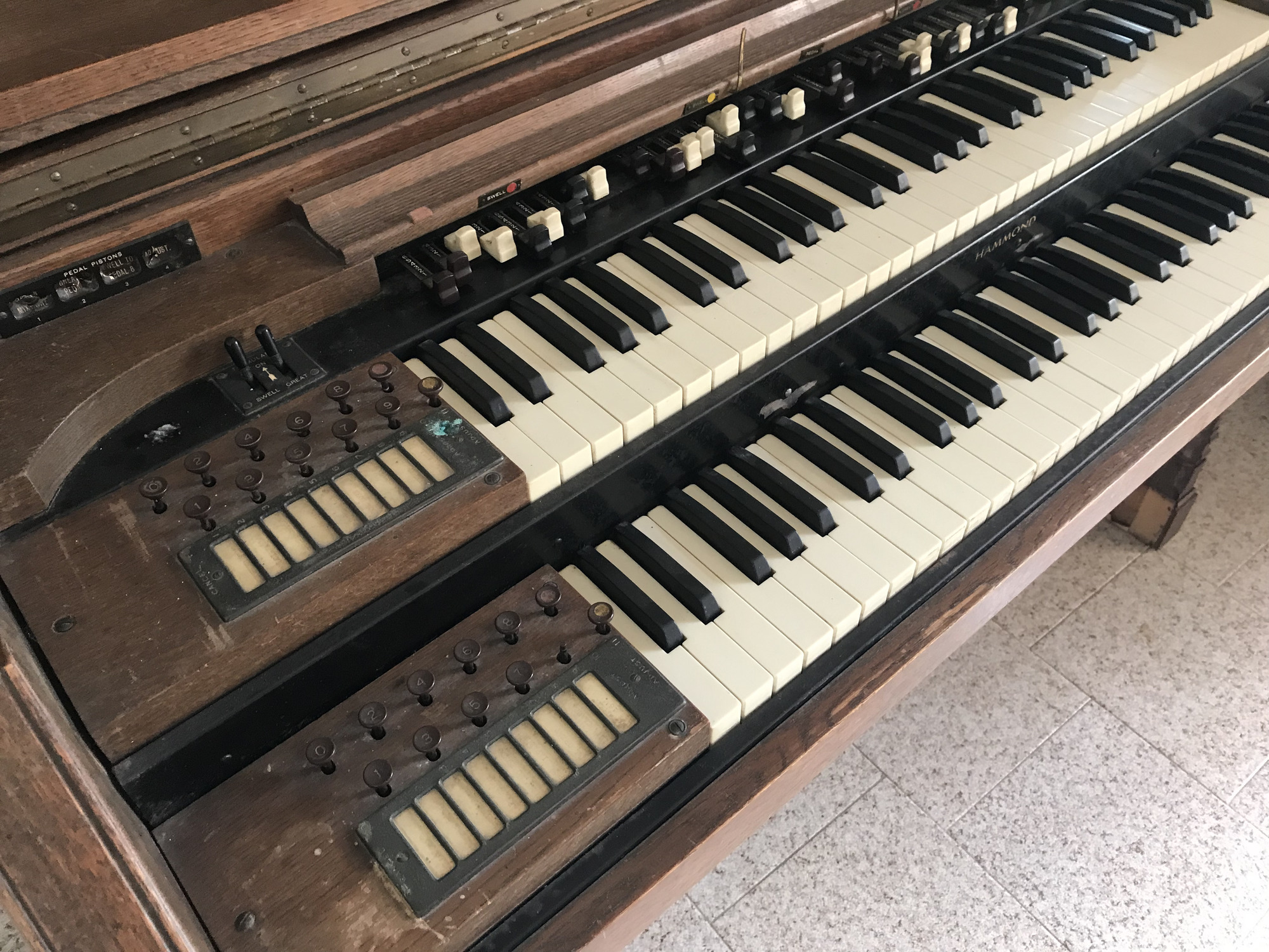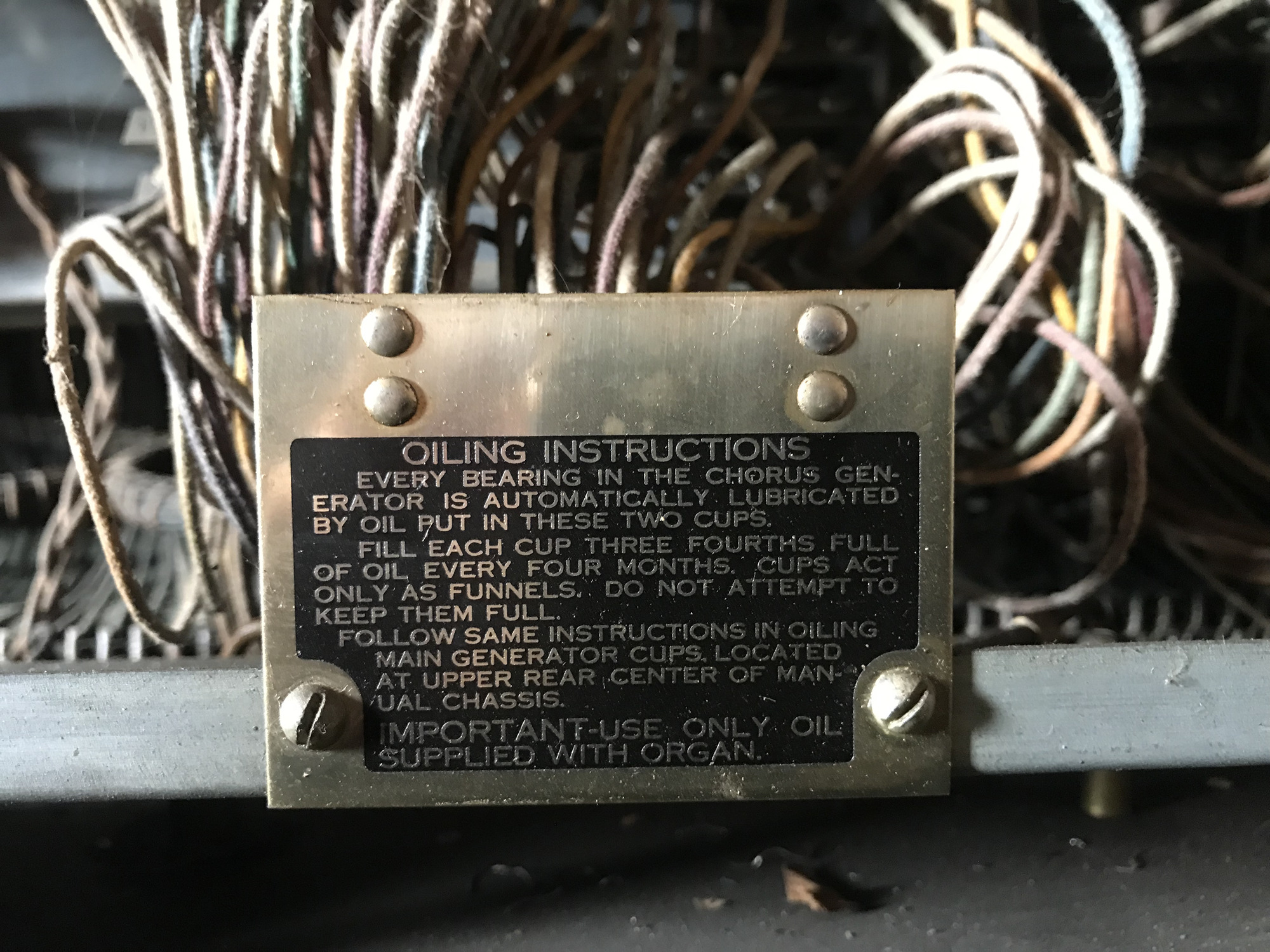 Costruito tra la fine del 1937 e il 1942 l'Hammond model E risultava essere uno dei modelli più costosi dell'epoca. Questo in mio possesso veniva venduto ai magazzini Harrods di Londra per 550 sterline del 1938. La particolarità di questo hammond è di essere nato per l'uso liturgico, quindi unione tasto pedale, pedaliera 32 note e 2 generatori al suo interno, uno dei quali leggermente scordato dal principale per poter simulare il registro battente della voce umana (chorus). Lo strumento che ormai ha quasi 90 anni risulta completo al 95%. Ho provato a dare tensione ai generatori e i motori girano liberamente. Si prospetta un lungo restauro che dovrà essere minuzioso e meno invasivo possibile vista la rarità dello strumento